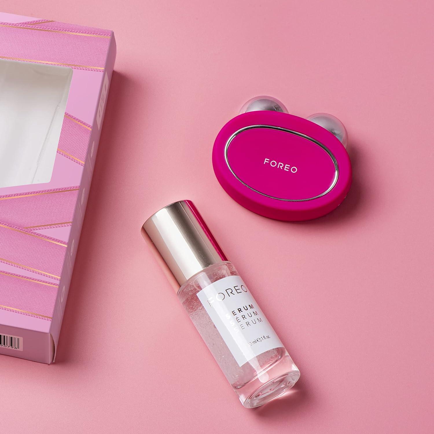 ENERGIZING MICROCURRENT FOR AN INSTANT, NON-SURGICAL LIFT Save 16% as you exercise the 65+ muscles of the face & neck for an immediately visible, non-invasive face lifting. This set includes the microcurrent facial toning device, BEAR, to instantly tighten, firm, and lift. Energizing microcurrent and relaxing T-Sonic massage combine with the complimentary Serum Serum Serum – antioxidant-packed, hydrating, and rejuvenating Micro-Capsule Youth Preserve – and ensure optimal conductivity, enhanced results, and that coveted timeless radiance. Enjoy the most comfortable face-sculpting and easiest device handling with the patented Anti-Shock System, making your BEAR the safest microcurrent device out there. Measuring your unique skin resistance 100/sec, BEAR automatically adapts the treatment intensity in 0.02 secs for the most pleasant face-lifting that feels just like a pampering facial.